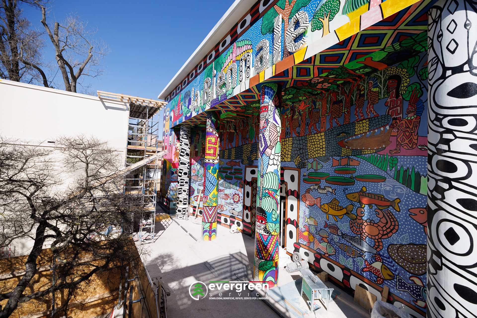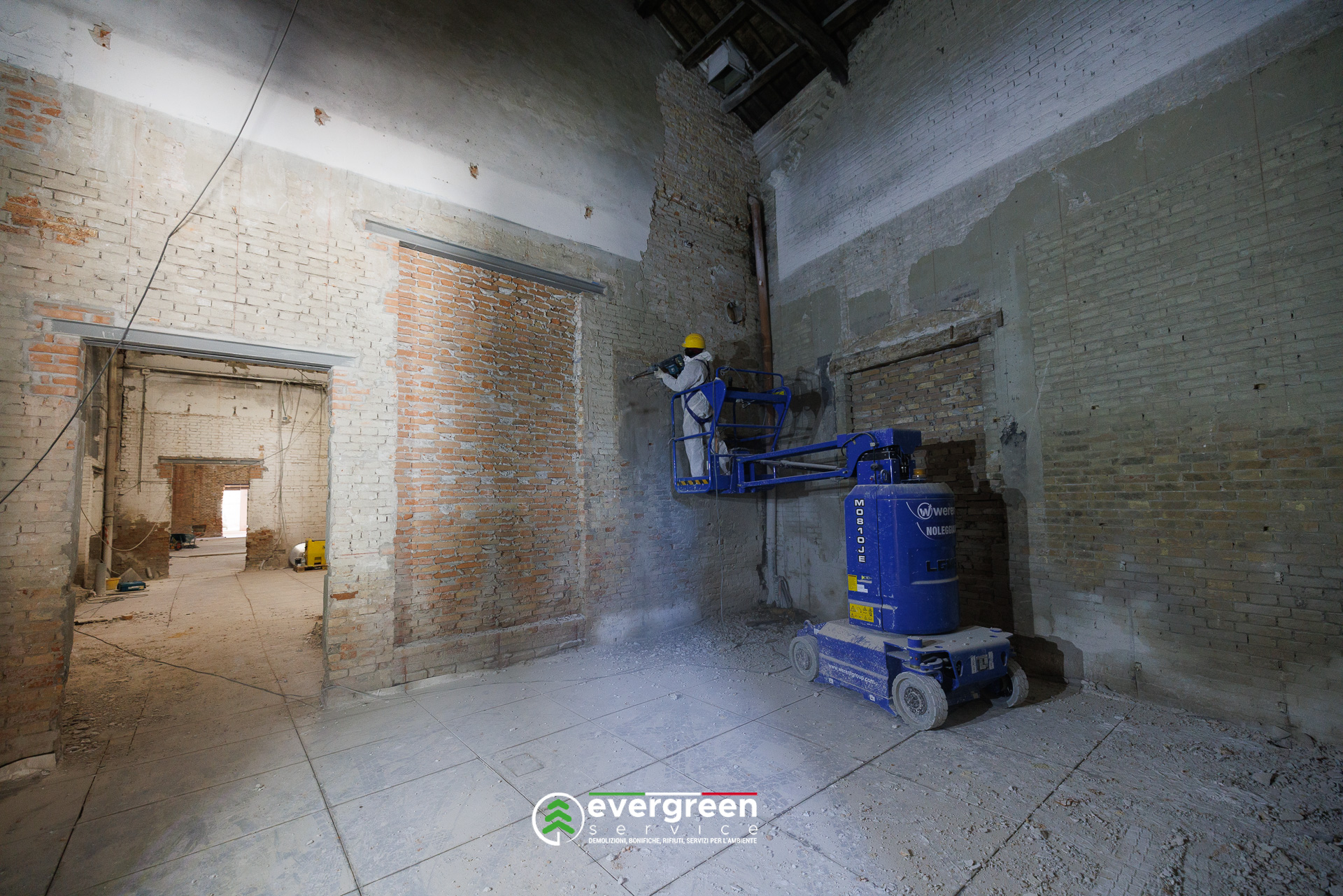 Nel Padiglione Italia della Biennale di Venezia sono stati eseguiti interventi di demolizione interna e rimozione impianti, mantenendo integralmente la struttura portante e le facciate storiche dell’edificio. Le operazioni hanno interessato tramezzi, controsoffitti, pavimentazioni e impianti elettrici e tecnologici, eseguiti con tecniche controllate per garantire sicurezza e stabilità della struttura esistente.