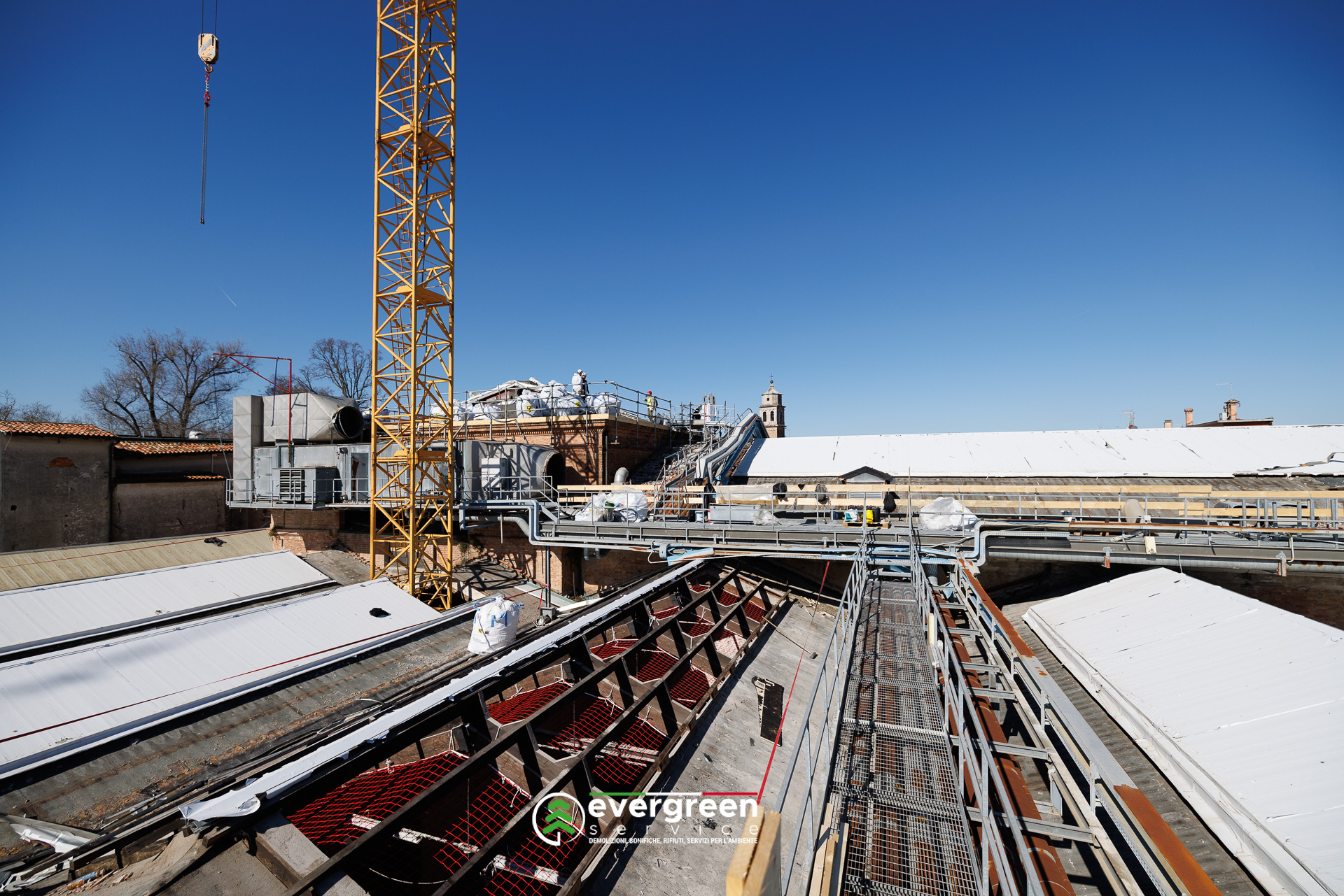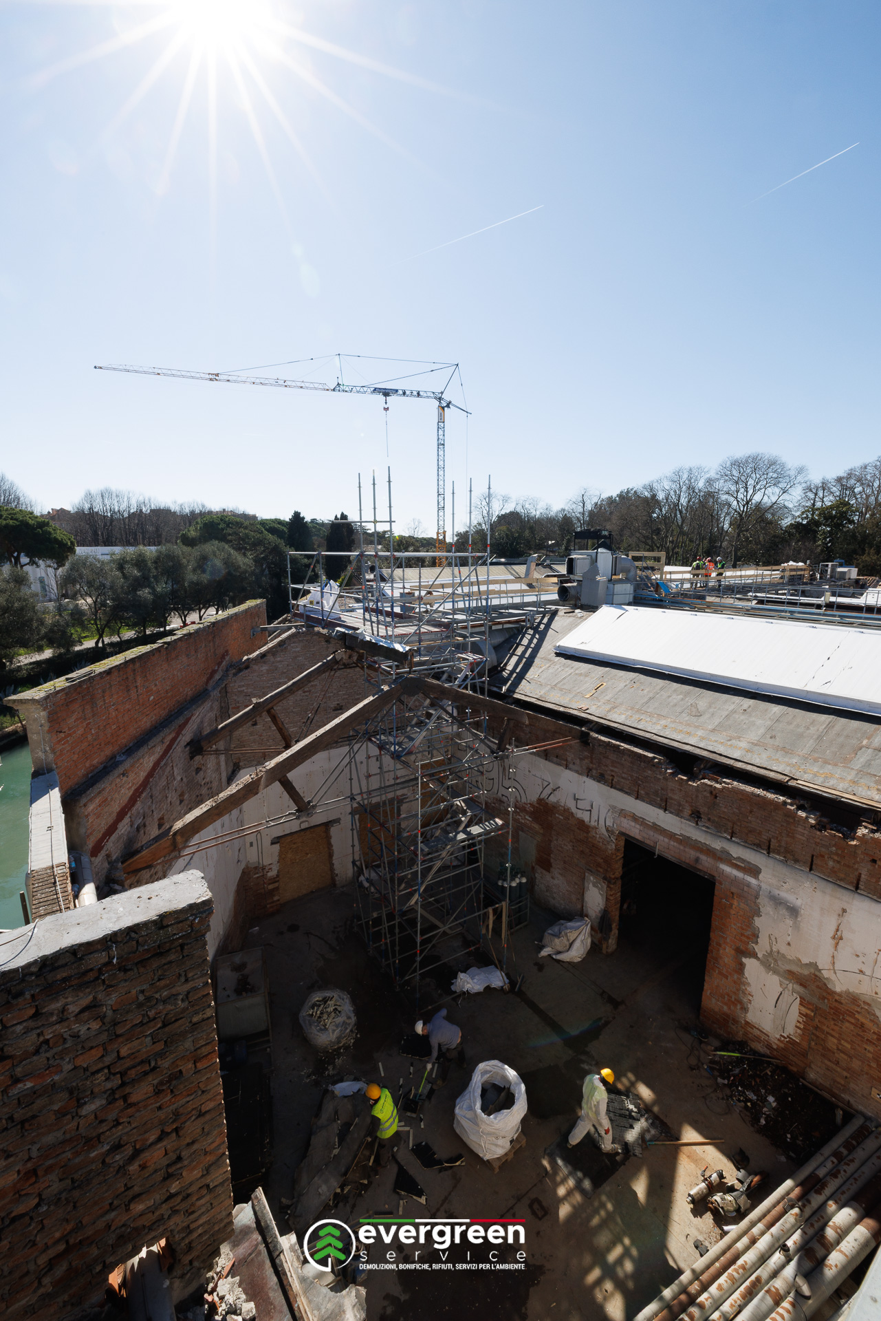 I materiali rimossi, tra cui legno, metalli, laterizi e componenti impiantistici, sono stati selezionati e smaltiti secondo le normative ambientali vigenti, assicurando un cantiere ordinato e sicuro. L’intervento ha liberato gli spazi interni, preparando il Padiglione alle successive fasi di allestimento e adeguamento funzionale per le esposizioni della Biennale.